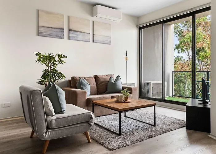 Apartmán Apartmán A Cozy & Modern Apt Near To Flemington Races nabízí kompletní kuchyni i pokoje s vnitřním dvorkem, Wi-Fi a vícekanálovou televizí. Toto místo se nachází 3 km od Zábavní komplex a kasino Crown Casino and Entertainment Complex.